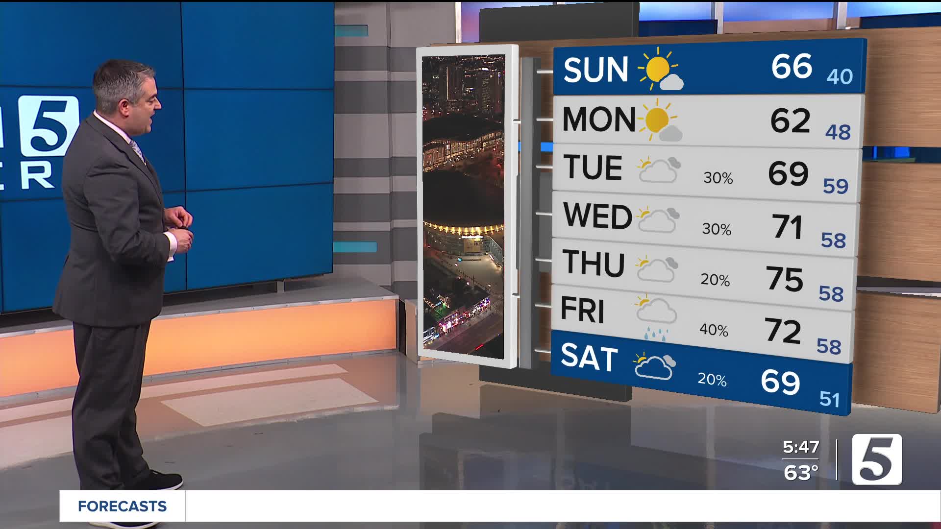 A pattern change brings very warm air throughout the mid-week, but the 70s won't be traveling here alone. Rainfall is back in the forecast with scattered showers Tuesday through Saturday.