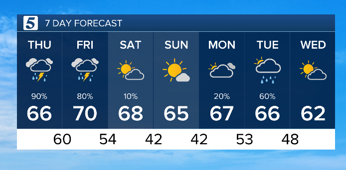 Today: Mo. Cloudy, Increasing Rain Chances, Few PM Storms Possible |High: 68| SE-5