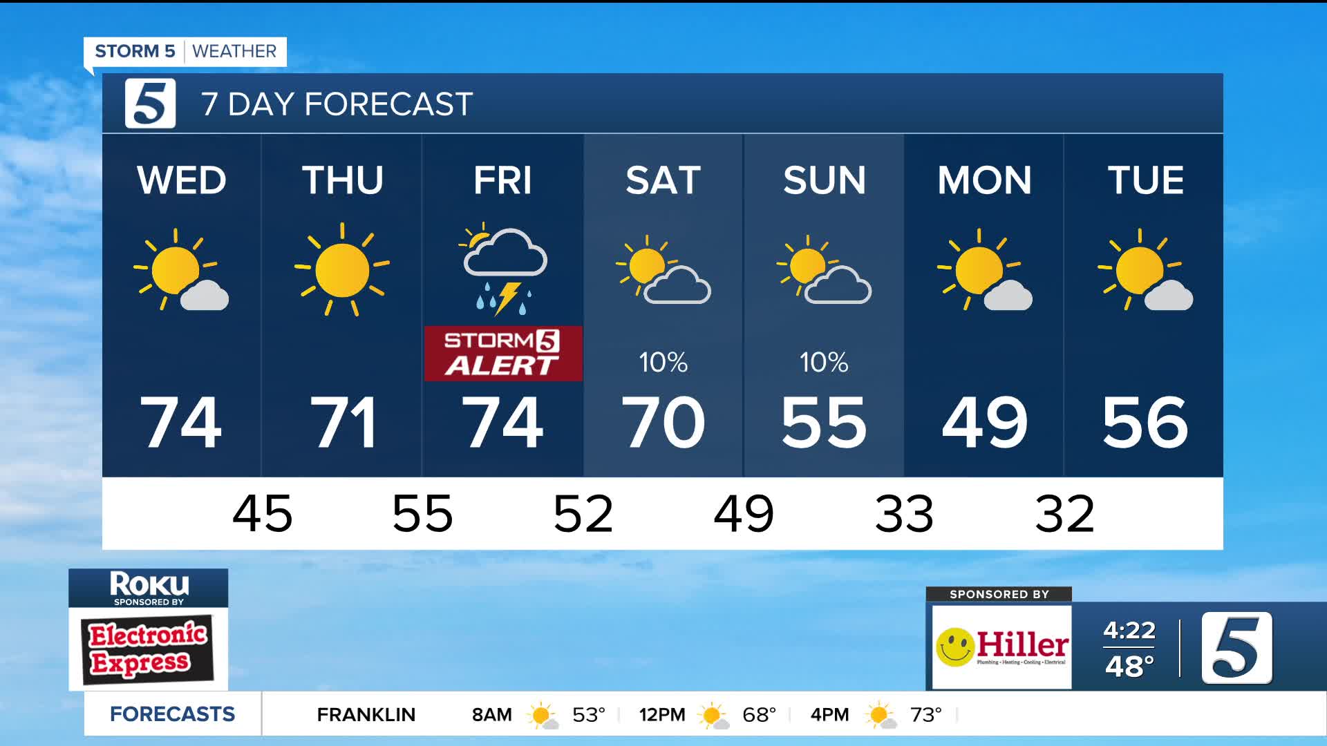 Friday starts out breezy and dry... However, a system will move into our region, bringing the chance for some strong to severe storms. This has prompted a Storm 5 Weather Alert.