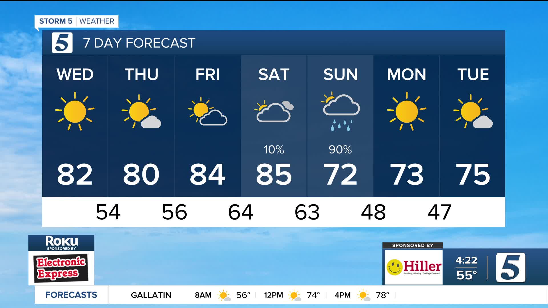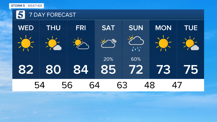 Wednesday: Sunny & Mild | High: 82 | NE 5-10