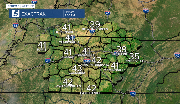 Morning clouds move out as the sunshine moves in. Even though it will be bright, it will still be unseasonably cold. Afternoon highs will top out in the mid-40s.