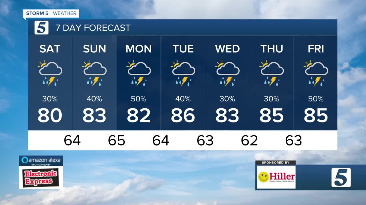 The weekend is here, but the unsettled pattern is also here, and in no rush to move out. High temperatures both today and tomorrow will be above average, in the 80s.